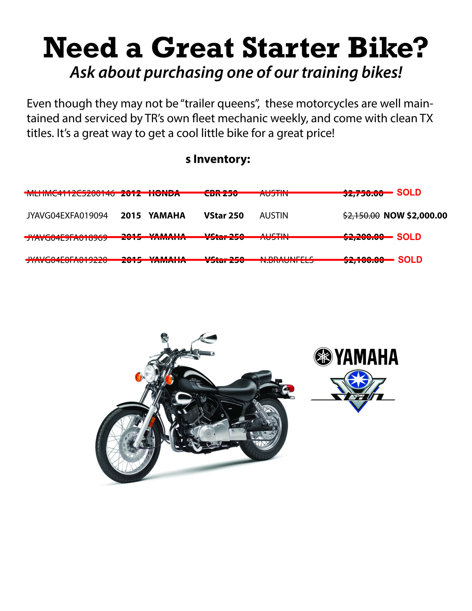 Training Bikes for Sale! If you’re interested in one of our bikes for sale, please contact us via email and we’ll get right back to you. Thanks!